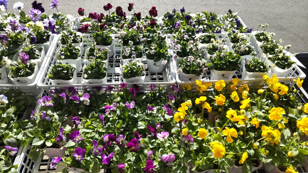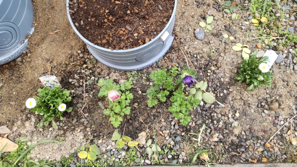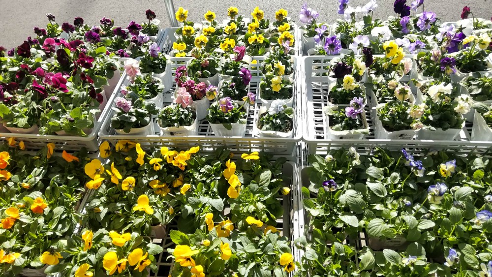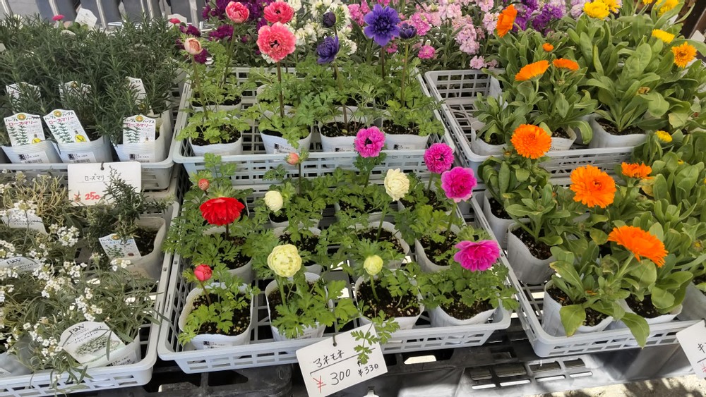 We found a small spring section filled with seasonal flowers in front of the market. Since they weren't so expensive, I bought some. I picked some perennial plants because they'll grow next year as well.