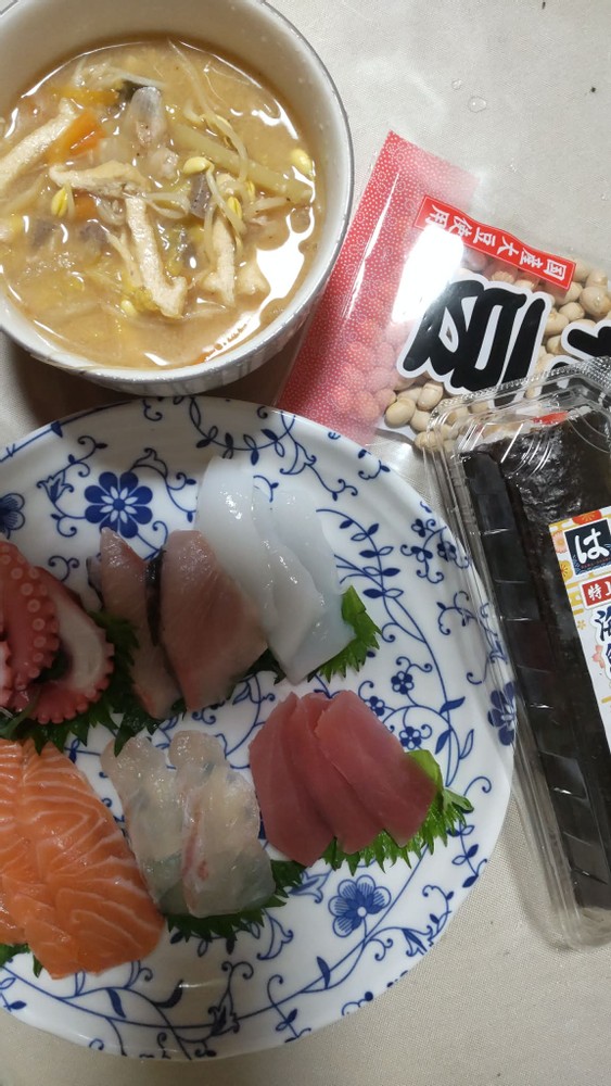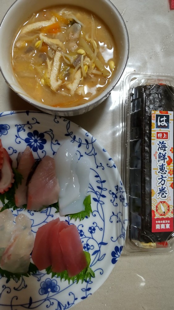 February 3rd is Setsubun (節分) in Japan, so I prepared sushi rolls, sashimi, and miso soup for dinner after taking care of my sick cat and my playful grandson. Setsubun is traditional Japanese event, and I've written about it in my previous post. If you're interested in it, please click here.