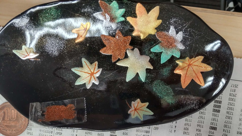 I'm a quite beginner of this technique, so I didn't use pure gold powder. Instead, I used fake one. Even so, it turned into a beautiful piece. I'm quite satisfied with the result.