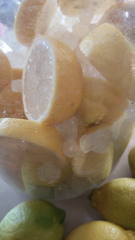 Making lemon syrup is very easy. First, slice some lemons.