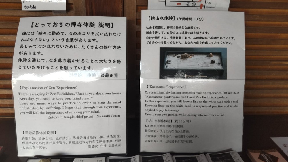 There were two Zen experience programs, but unfortunately, we arrived too late to participate.