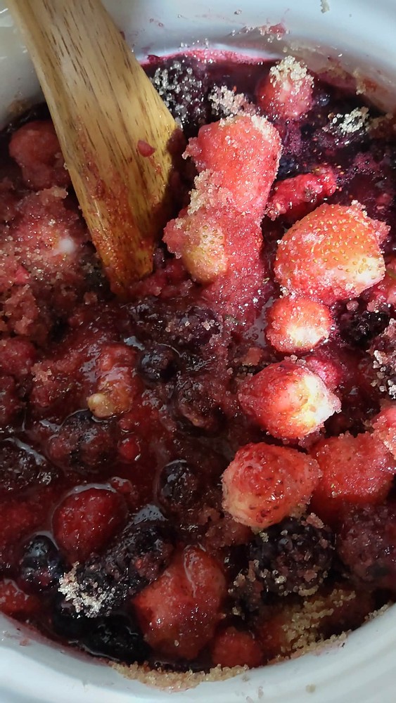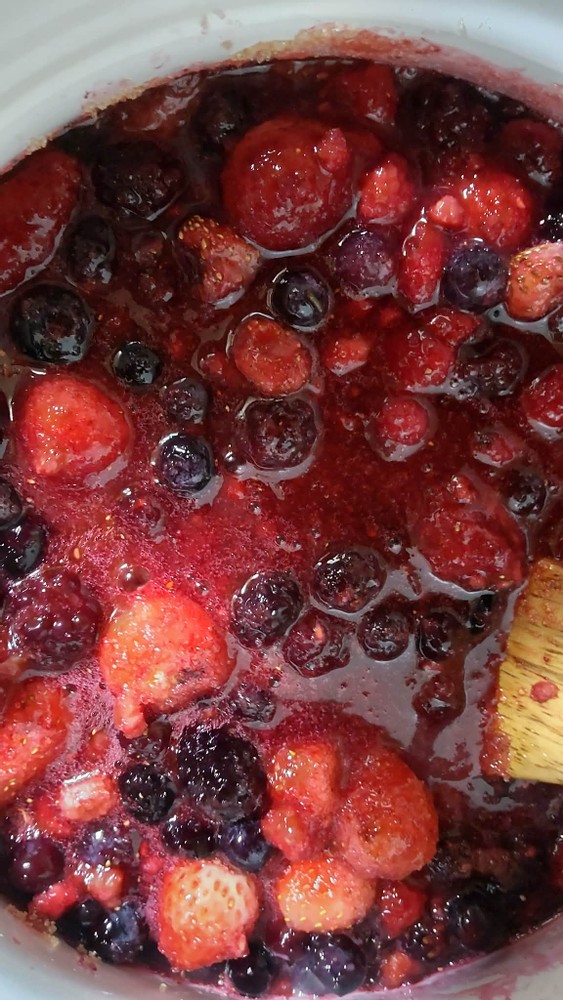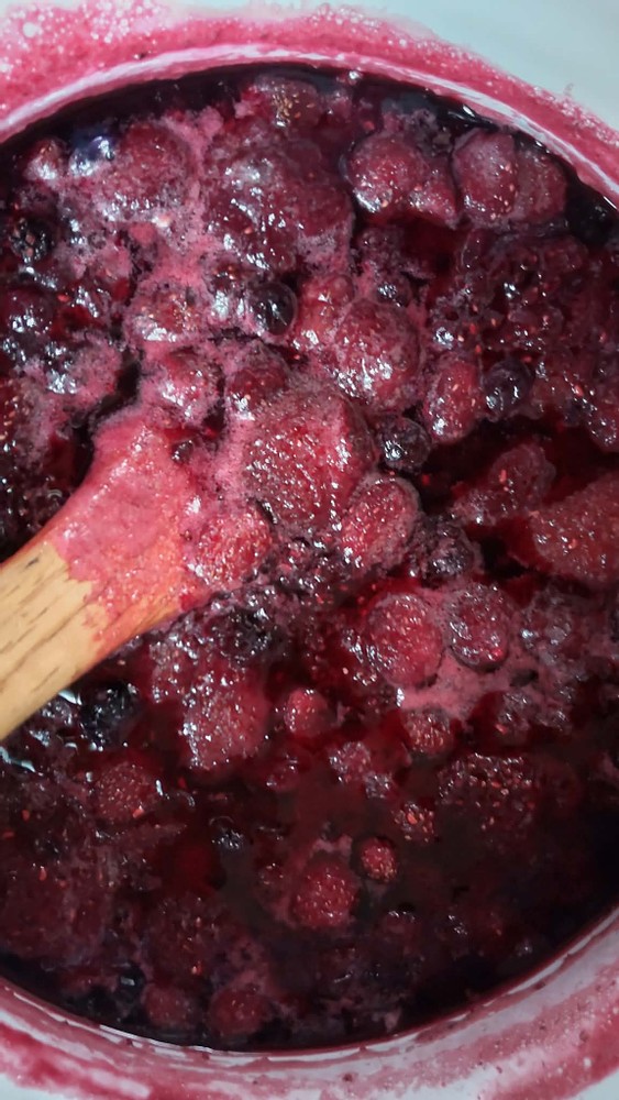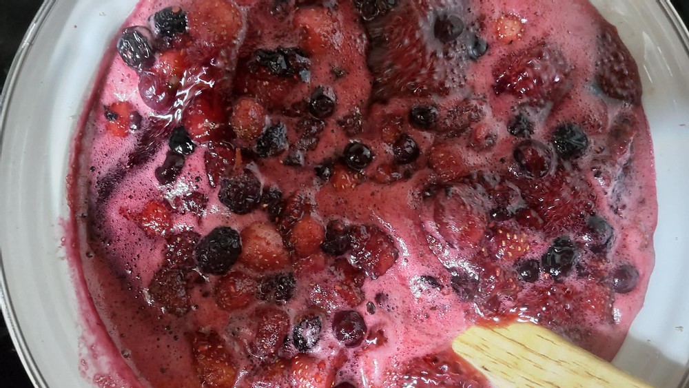 Last month, I made a mixed berry jam using them. Making jam is quite simple. You add sugar and lemon juice and heat the mixture. That's it.