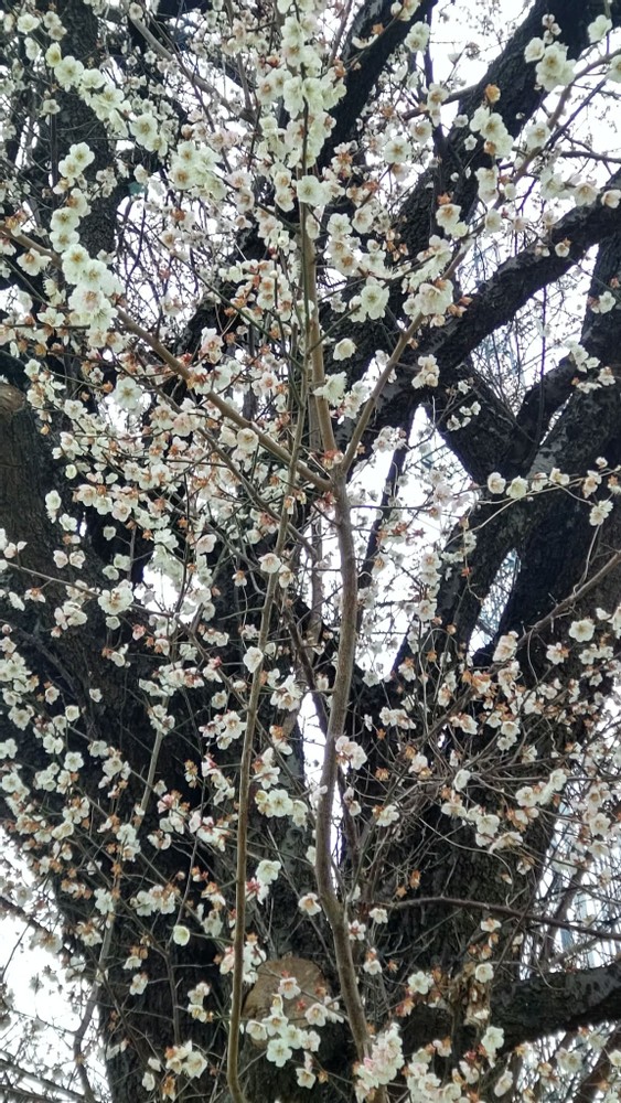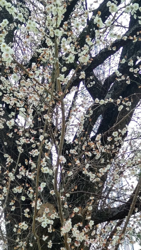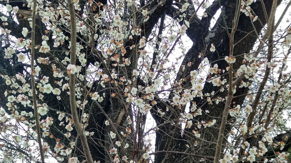 On the way back, I saw a large plum tree in my parents' neighborhood. It has planted in front of my childhood friend's house. I used to play in that area, but I'd never realized that such a tall tree was there. How could I have missed such a beautiful sight for so many years?