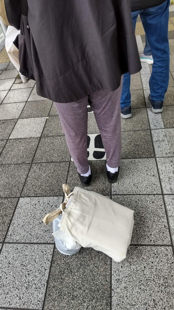 On the way back from my parents' house, I got off a train and walked to a bus stop. There was already a long line. When I went to join it, I saw two bags on the ground. I assumed that someone who didn’t want to stand had placed them there to hold a spot, so I waited behind them.