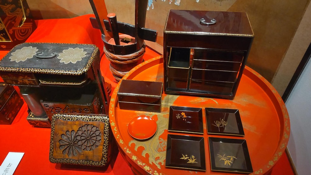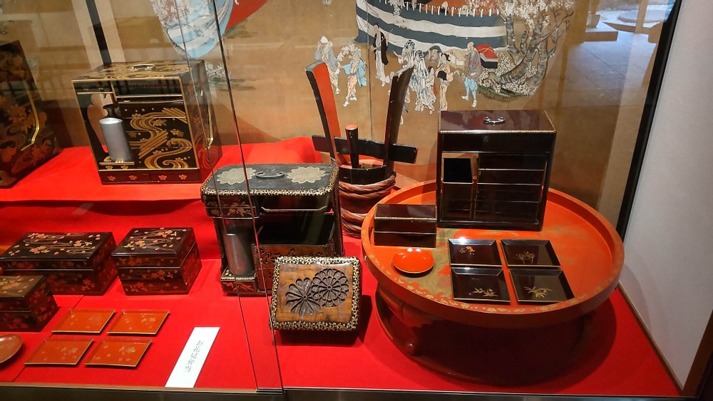 When a friend and I had lunch at a fu (wheat gluten) restaurant, we also visited its bento box (lunch box) museum. Bento boxes were born during the Heian period (794 to 1185), and during the Azuchi-Momoyama period (1568 to 1600), they became the shape we still use today. During the Edo period (1601 to 1868), they were decorated with maki-e (a Japanese lacquer decoration technique) or raden (one of the decorative techniques used in traditional crafts and woodwork). They got popular among the daimyo (feudal lords) and the kuge (aristocratic class), who loved having luxurious bendo boxes.