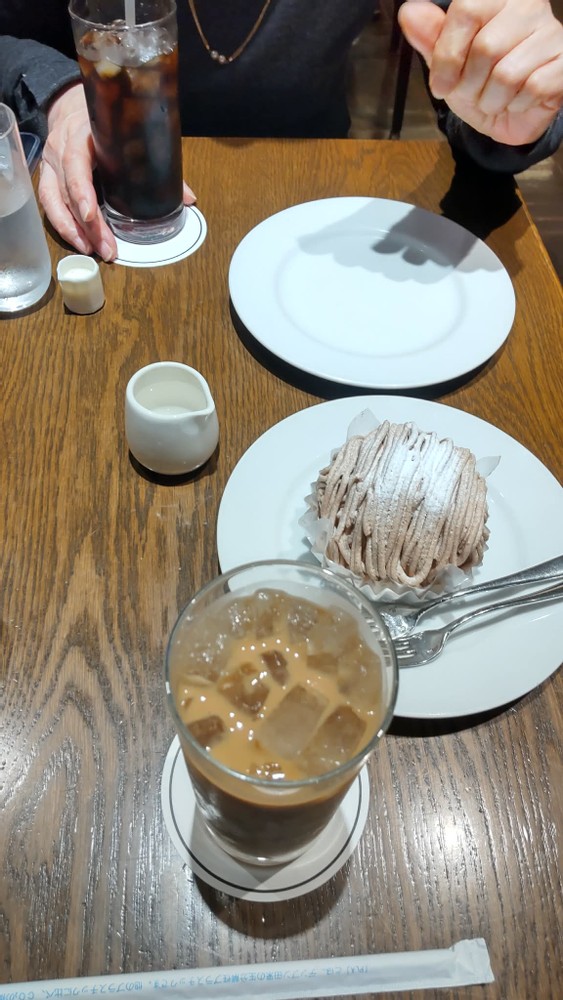 After visiting two temples, we stopped at a coffee shop and ordered iced coffee and a piece of cake to share.