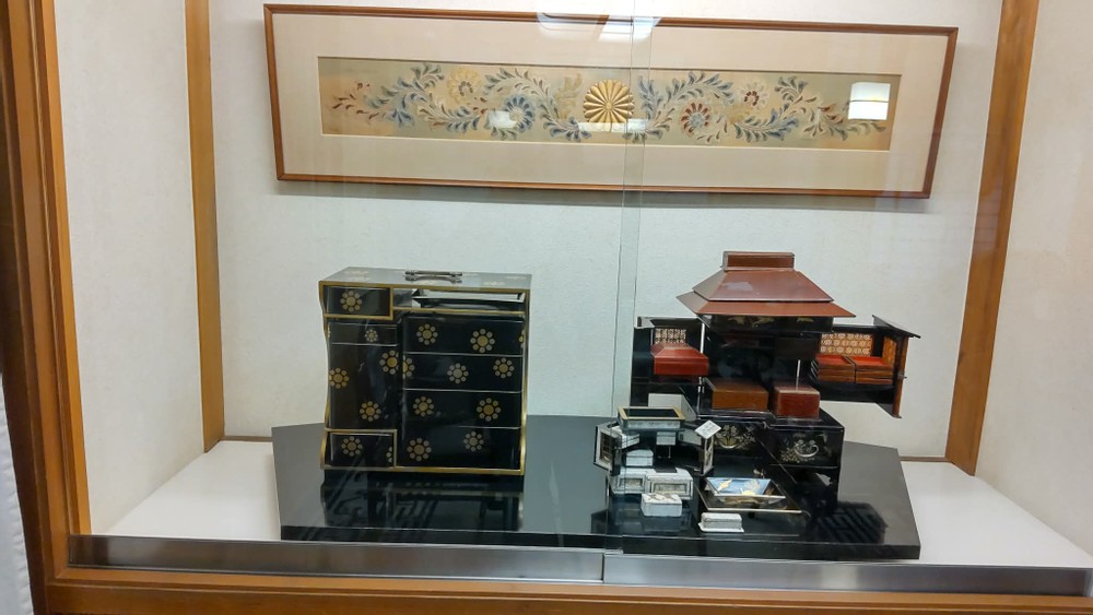 I only took a photo of one raden chair, but actually there were over twenty of them. Both maki-e and raden decorations make objects look very luxurious.