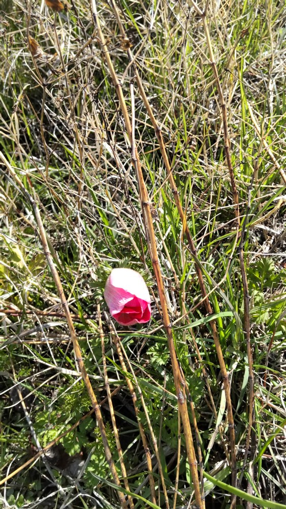 I was very surprised when I found an anemone growing in a patch of grass. I wondered why it was there. Maybe, did a bird bring a seed there?