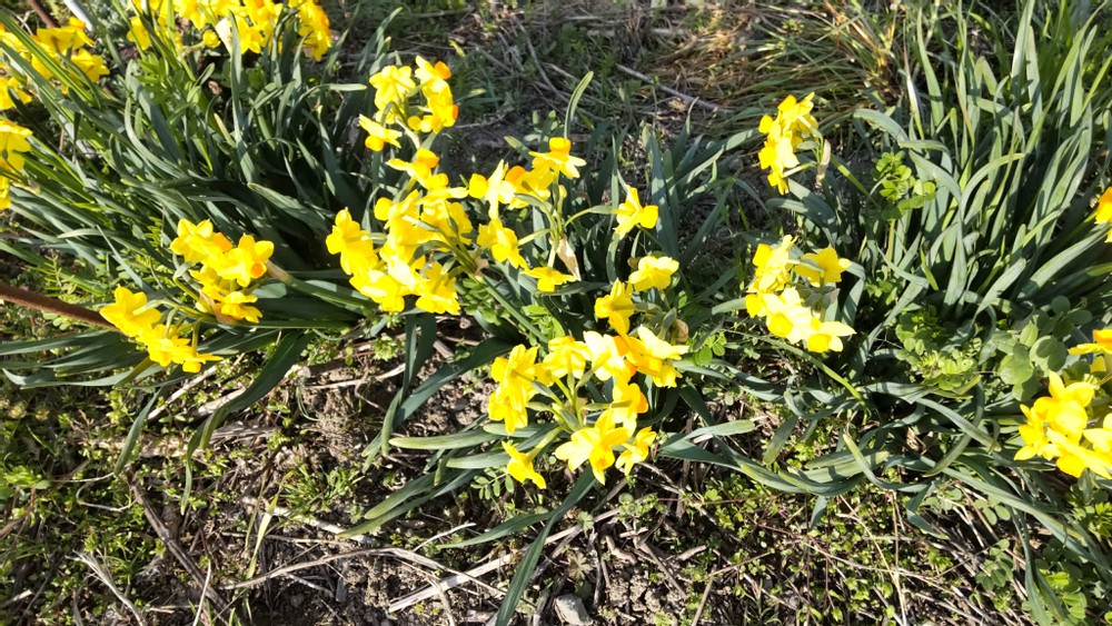 The next picture shows yellow daffodils. They looked especially bright in the soft yellowish light of the morning.