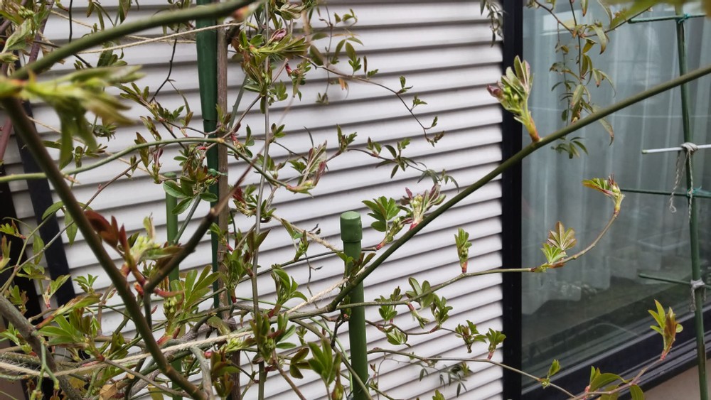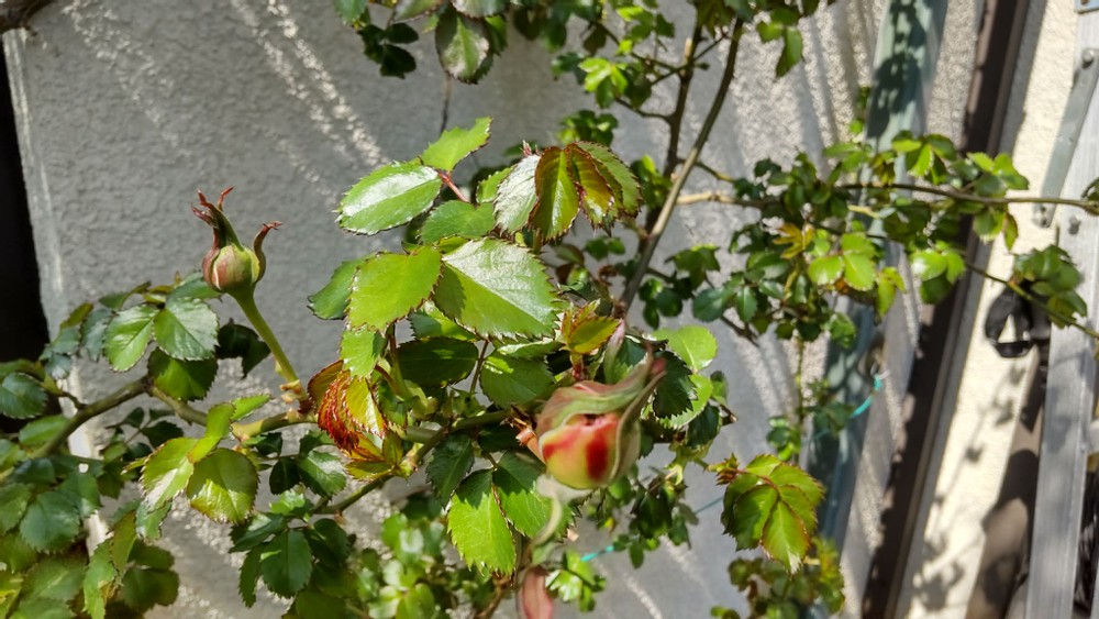 The most surprising thing is that one of my rose bushes already has some buds! This is really unusual.